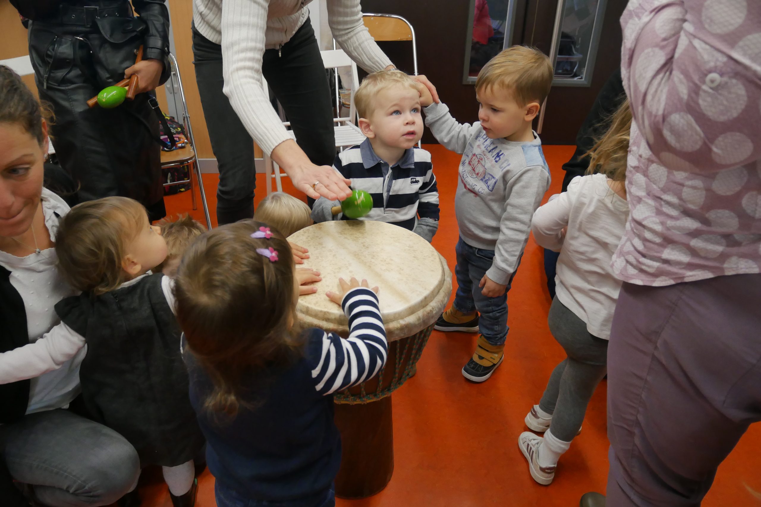 Cet atelier, dédié aux moins de trois ans accompagné par un parent, permet aux plus jeunes de découvrir des sonorités, des chansons, des instruments de musique. Ils pourront ainsi manipuler des petites percussions, danser au son de la guitare ou du djembé, écouter des comptines… Voire les apprendre pour les plus grands.