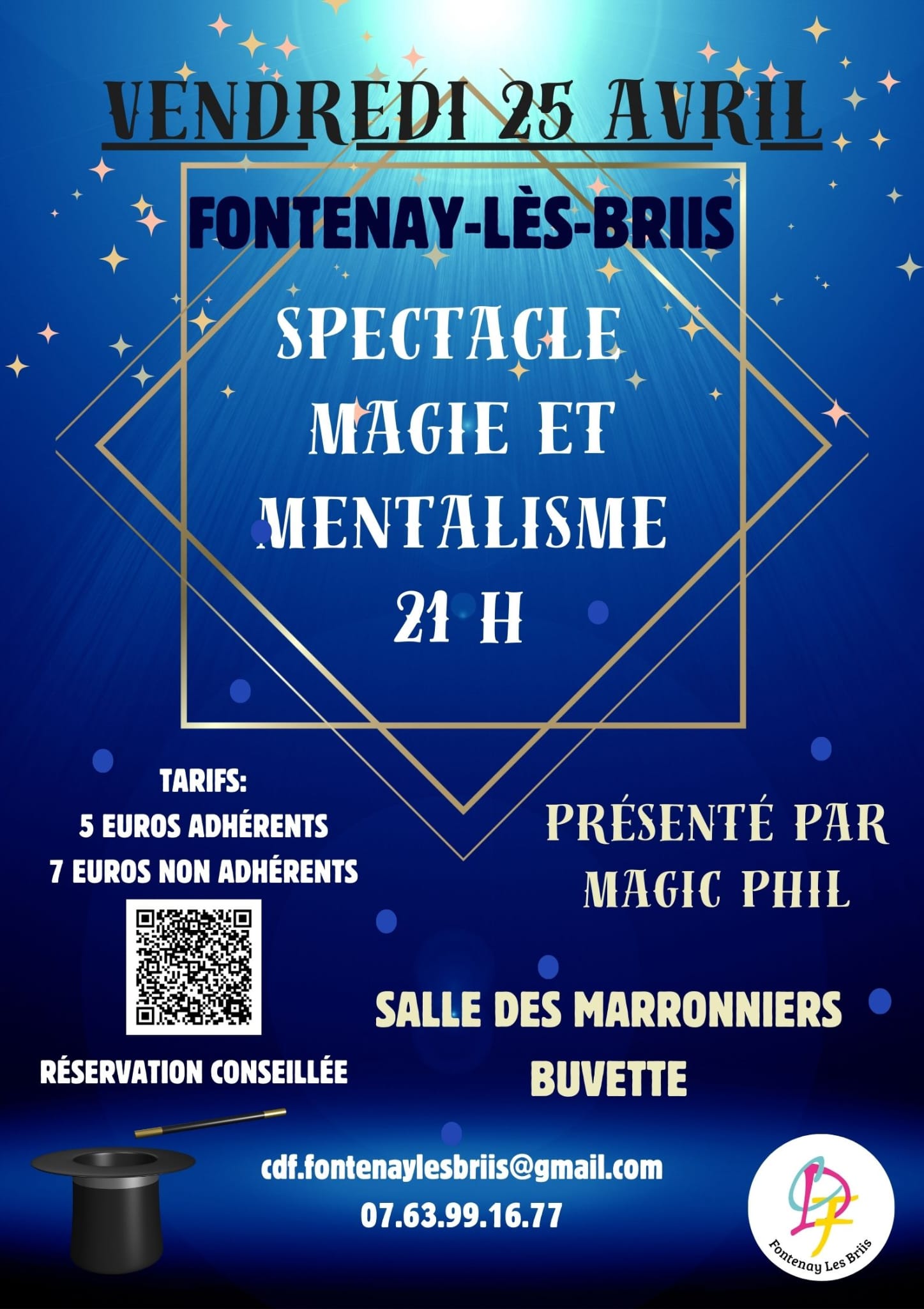 L’association Cœur de Fontenay vous propose un spectacle de magie et de mentalisme, présenté par Magic Phil, le vendredi 25 avril à 21h à la salle communale des Marronniers.