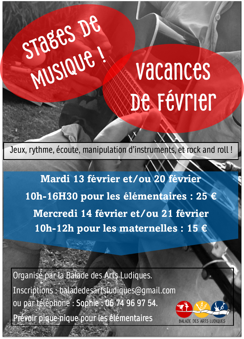 Renseignements et inscriptions auprès de Sophie au 06 74 96 97 54 ou par mail : baladedesartsludiques@gmail.com