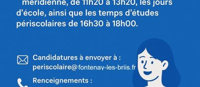 Vous aimez travailler avec les enfants et souhaitez contribuer à leur bien-être au quotidien ? La commune de Fontenay-lès-Briis...